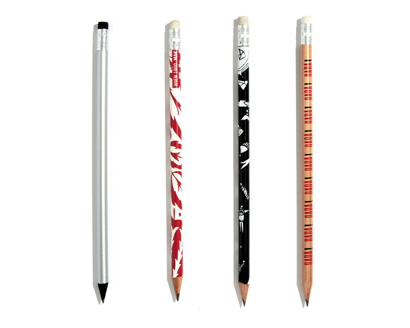 360º silkscreen natural wooden pencil printed in one color or more if you want. The whole body of the pencil can be printed. They can be