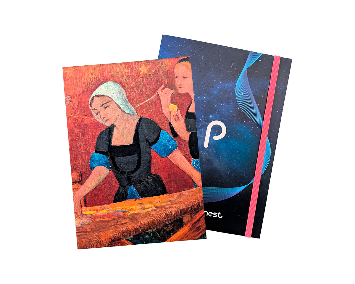 A5 and A6 size milled notebooks. Laminated cardboard covers in 300 gr paper. Inside 50 sheets in 80gr white paper. Spine of 1 cm thick.