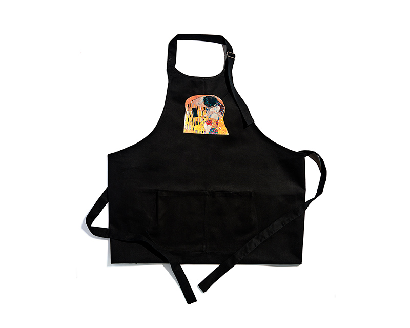 Cotton apron with pocket, strap for hangging and two ribbons to tighten apron. Cotton color: black, red bordeaus,
