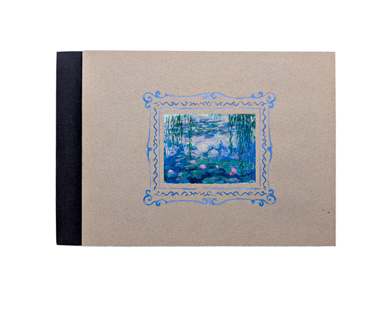 Notebook with spine made of fabric. Interior with 32 blank aquarelle pages of 290g. With 55 blank sheets.