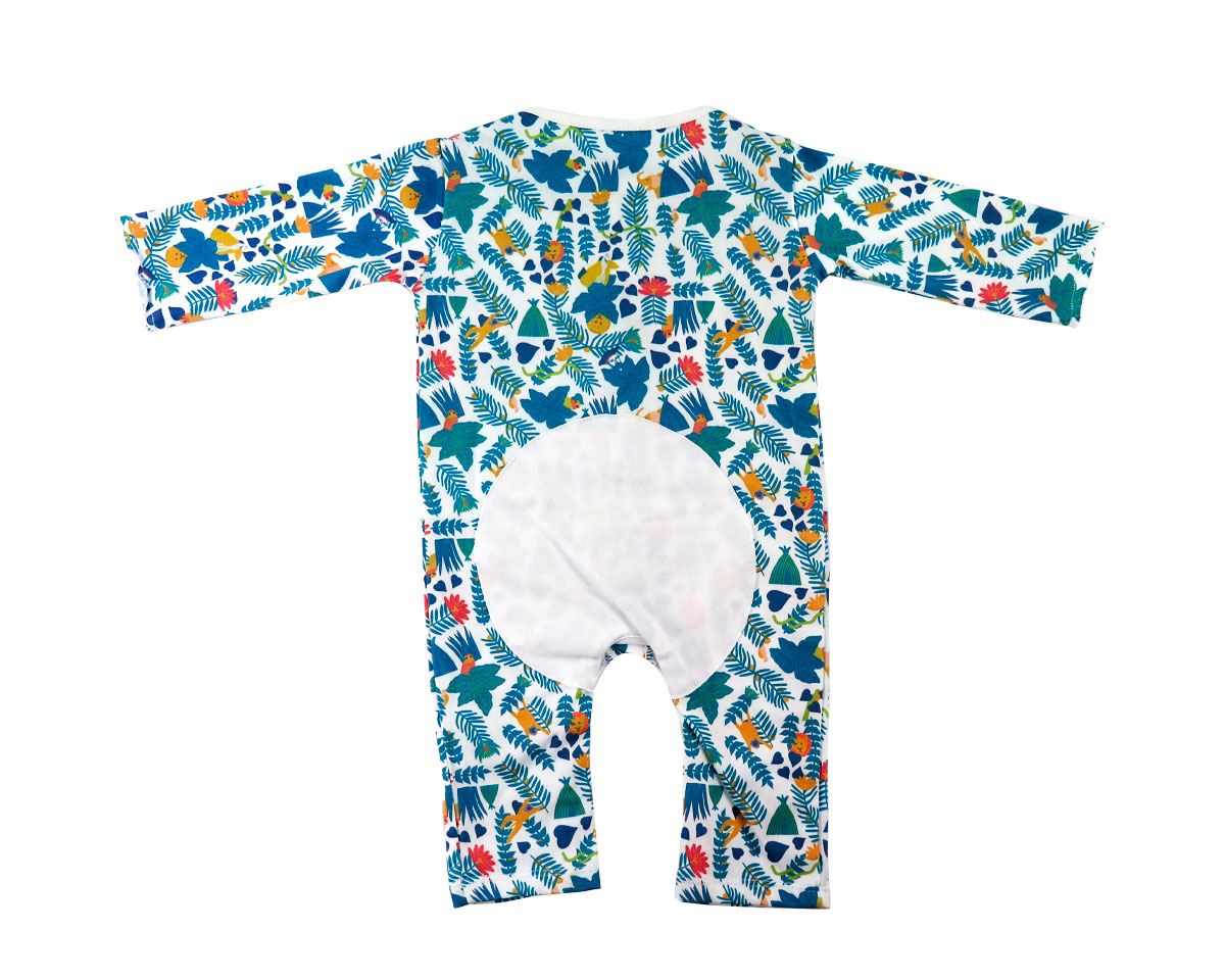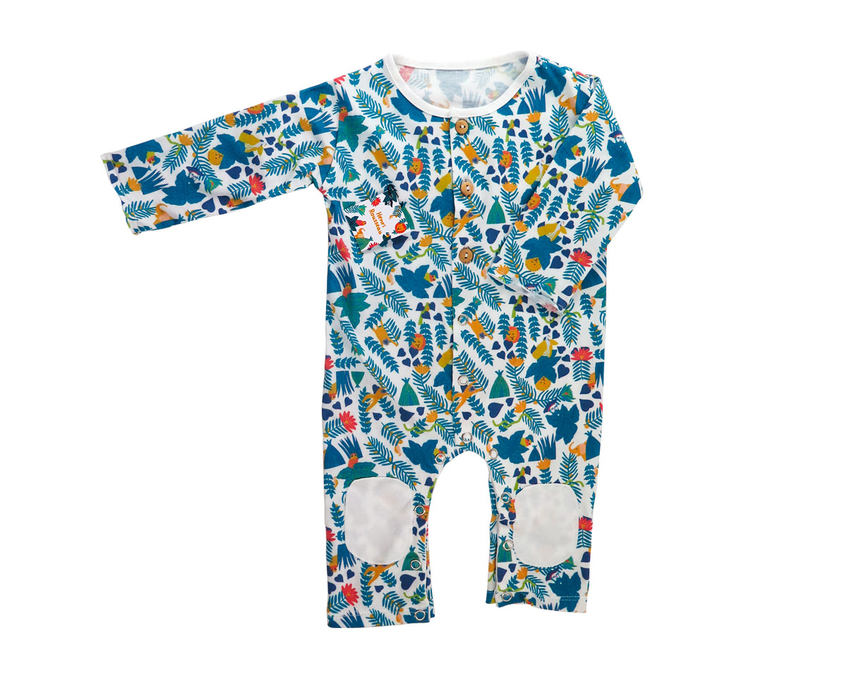 100% cotton jumpsuit inspired by works of art. Example model features elements from Henri Rousseau’s paintings. Customizable design upon request. Made in Europe.