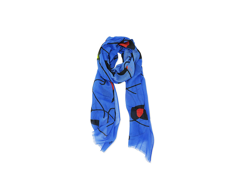 Polyester scarf with the image of Miró. Digital printed. Foulard made of 60% cotton 40% modal. Design of Painting 1965. Presentation gift wrapped in a special envelope with a label.