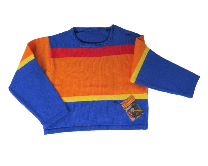 100% cotton kids hat, mittens and sweater inspired by Edvard Munch’s artwork. Customisable design upon request.