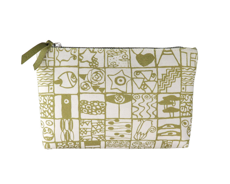 Medium pouch bag with metal zipper and puller.