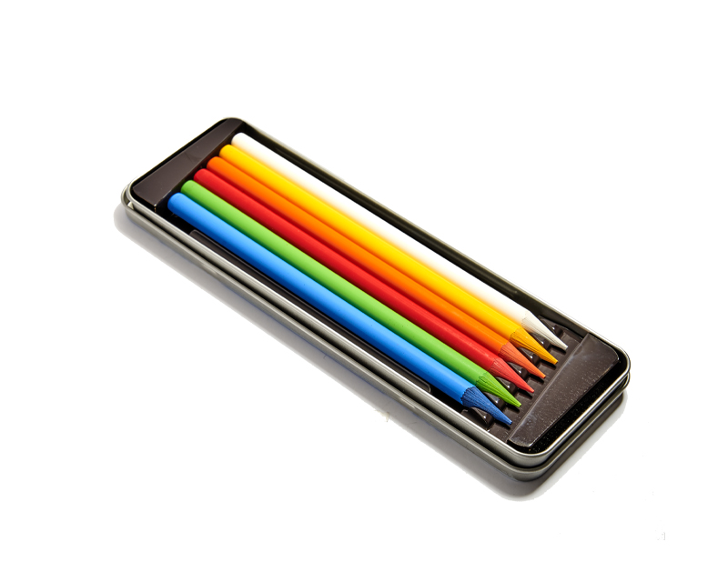 Metallic box with 6 color graphite inside. The cover printed in digital with the image you want.