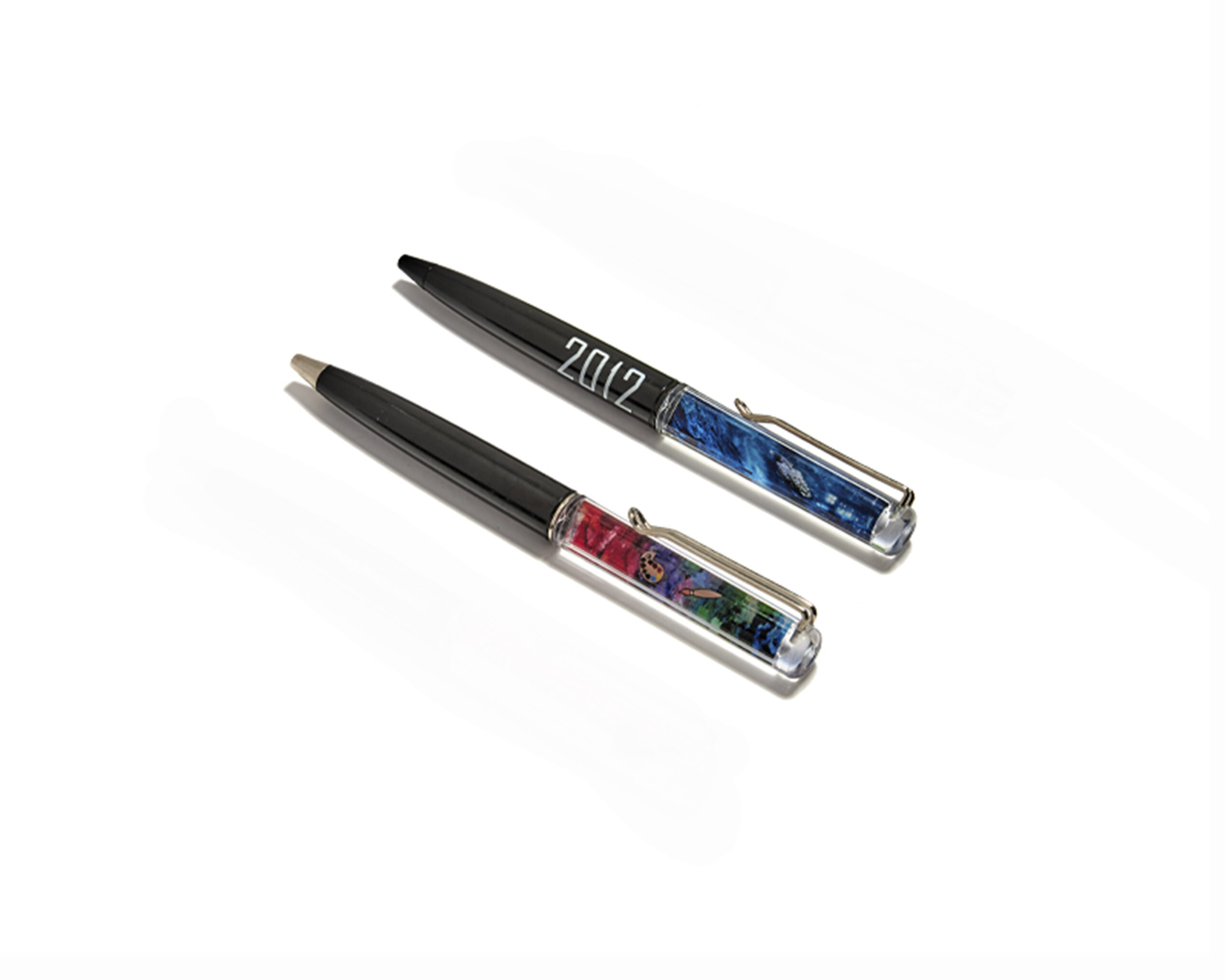 Pens with water and a slippery object inside. Customized with image printed on the background. We also have other different shapes for these pens and we also make them in Metal. Ask us for Prices. Logo goes on the barrel.