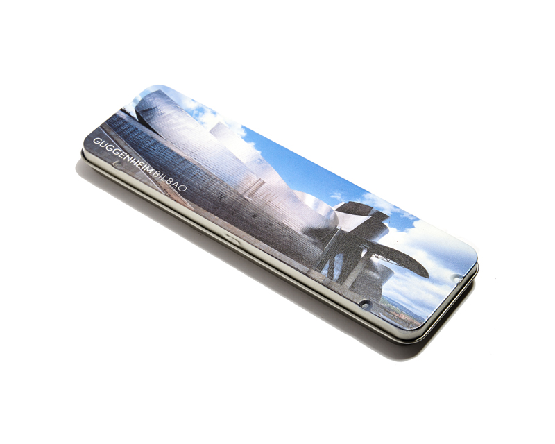 Caja metálica con 6 graphitos de colores en el interior. La tapa impresa en digital con la imagen que se desee.
