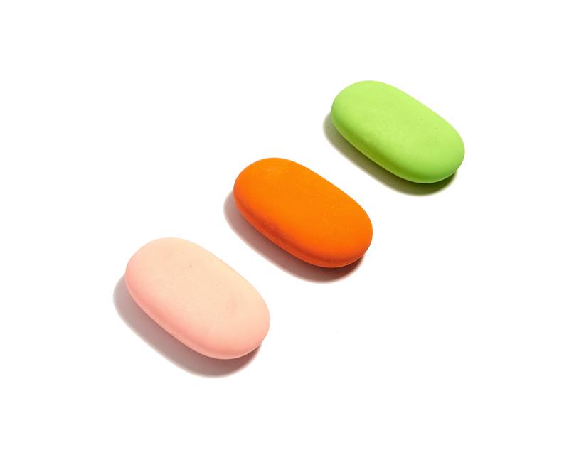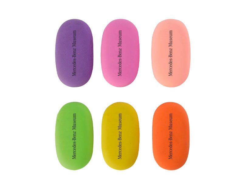 Goma ovalada «colorful» con un surtido de 6 colores pastel. No contiene PVC.