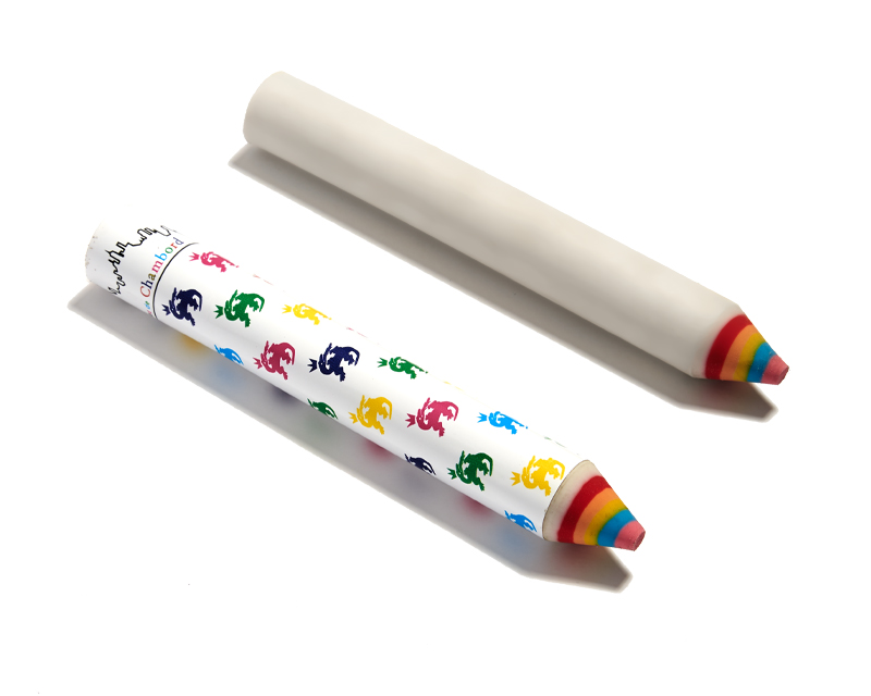 Goma gruesa en forma de lápiz forrada de vinilo con la punta de diferentes colores.
